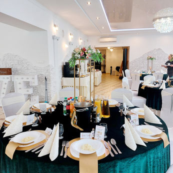 Do dyspozycji naszych gości oddajemy dużą salę weselną która przy odpowiednim ustawieniu stołów pomieści do 90 osób oraz przepiękny ogród z zadaszoną altaną w której organizujemy uroczyste wesela plenerowe. Sala zaaranżowana jest w ponadczasowym stylu Glamour z elementami złota i kryształów a dodatkowym elementem ,który zawsze rozświetla nasze wnętrza są świece .Zdecydowanie rekomendujemy stoły okrągłe, które zostają uzupełnione wygodnymi i miękkimi krzesłami w białych pokrowcach. Jednak posiadamy także układ na stoły prostokątne, więc zostanie to dopasowane do potrzeb gości.